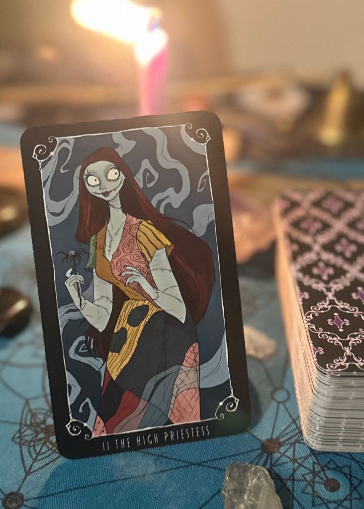 As with all tarot cards, the High Priestess takes on different forms depending on the artist’s interpretation. Take the whimsical Nightmare Before Christmas deck, for instance. Sally, the resourceful heroine, embodies the High Priestess perfectly. Throughout the movie, she trusts her gut instincts, utilizes the tools around her, and lets her emotions guide her wisdom.